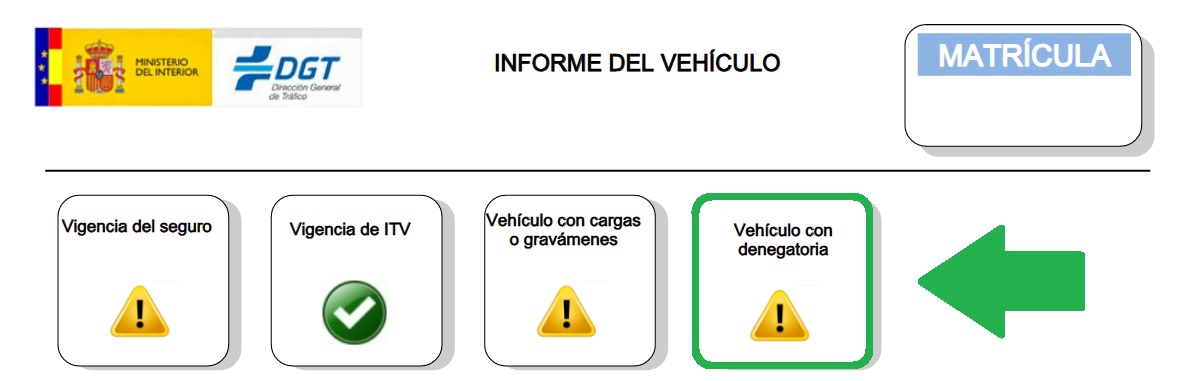 Ejemplos específicos serían la anotación de modificaciones importantes que deben registrarse en la ITV (Inspección Técnica de Vehículos) o el cambio de titularidad de un automóvil, que debe ser realizado en un plazo de 30 días. Si aparece una denegatoria al solicitar un informe de vehículo, como se mencionó previamente, deberá resolverse antes de poder realizar cualquier otro procedimiento. A diferencia de los embargos, no está permitida la transferencia en este caso.
